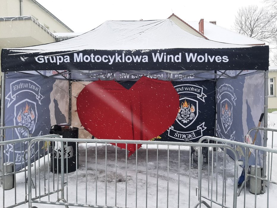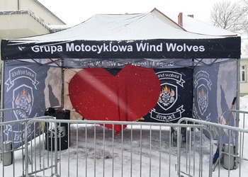 Przed siedzibą sztabu nr 418 w Śmiglu przy Centrum Kultury czeka Serce Wielkiej Orkiestry Świątecznej Pomocy przygotowane przez Grupę Motocyklową Wind Wolves.